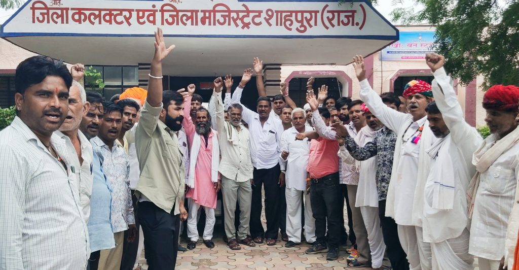 शाहपुरा में जीएम सीड योजना के खिलाफ किसानों का विरोध।