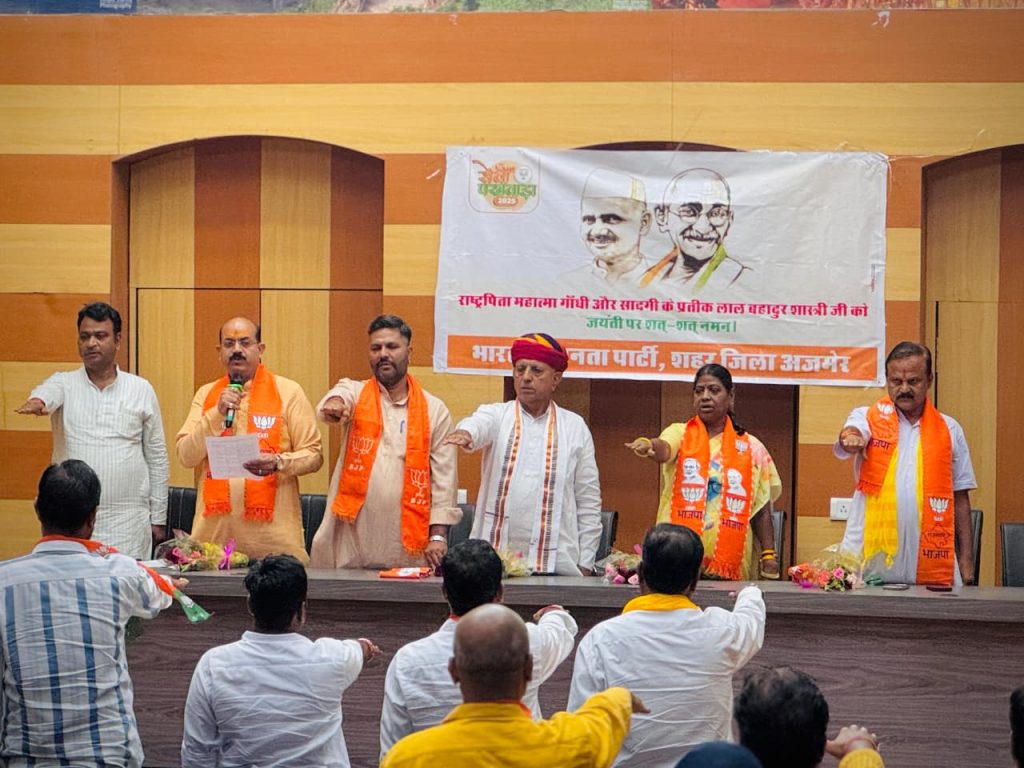 इसके बाद गांधी भवन स्मारक पर कार्यक्रम हुआ, जहां केंद्रीय कृषि राज्य मंत्री भागीरथ चौधरी, देवनारायण बोर्ड अध्यक्ष ओमप्रकाश भड़ाना, विधायक अनीता भदेल और अन्य नेताओं ने महात्मा गांधी और पूर्व प्रधानमंत्री लाल बहादुर शास्त्री को पुष्पांजलि अर्पित की। इस दौरान संगोष्ठी का आयोजन किया गया जिसमें स्वदेशी और आत्मनिर्भर भारत के संकल्प पर विशेष जोर दिया गया।